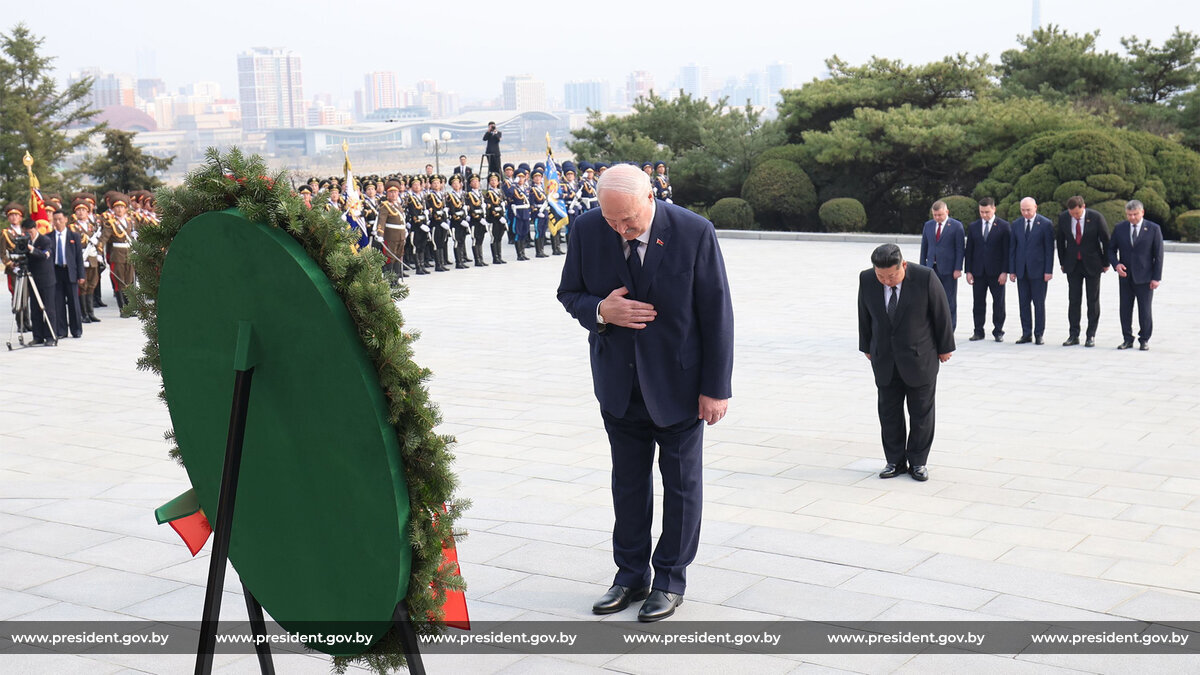 Os líderes visitaram o Monumento da Libertação na capital norte-coreana, dedicado aos soldados do Exército Soviético que libertaram a Coreia durante a Segunda Guerra Mundial. O presidente bielorrusso depositou uma coroa de flores aos pés do monumento, onde um minuto de silêncio foi respeitado.